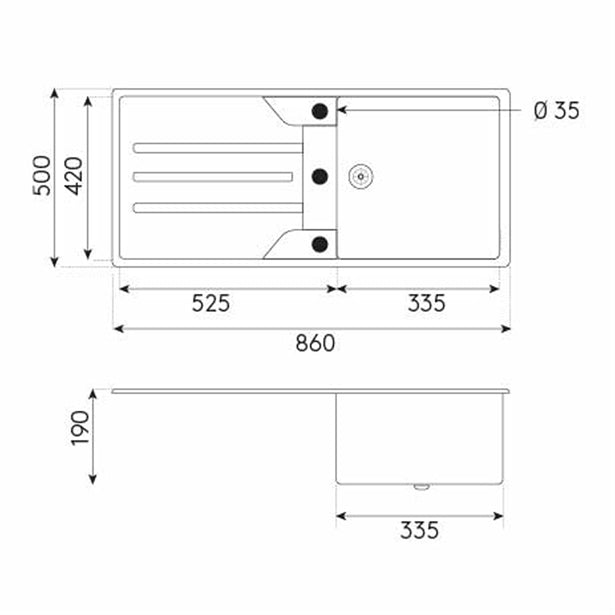 BLAUPUNKT ALENTO SINGLE BOWL SINK AND DRAINER, SMALL (GRANITE)